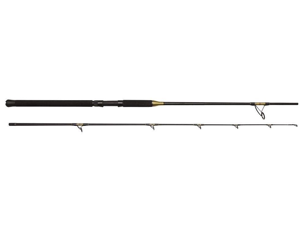 Je výborne vyvážený a má citlivú laminátovú konštrukciu. Rukoväť je z EVA, gimbal gumový s krížom, čo zaistí pohodlný úchop a bezpečné držanie pri súboji s veľkou rybou. Očká sú trojpätkové – trvanlivé a nehrdzavejúce. Prút sa hodí pre morský rybolov a ťažkú štičí prívlač. Znesie hrubé zaobchádzanie a len tak ho nezlomíte.