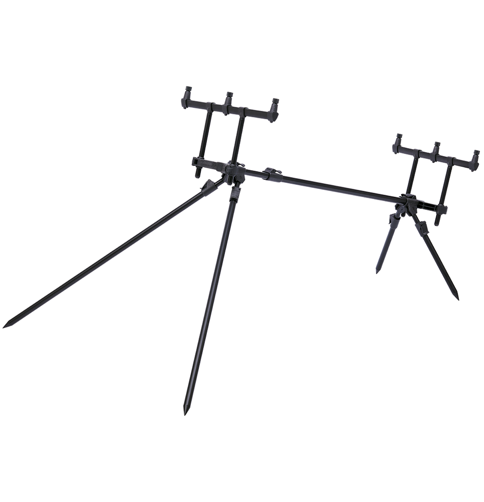 Vďaka tomu je tento stojan ešte univerzálnejší a stabilnejší. Dlhé predné nohy umožňujú nasmerovať prúty špičkami vysoko hore, čo je výhodné pri love vo veľkých vzdialenostiach alebo na veľkých riekach.